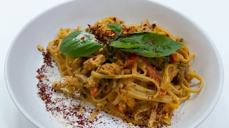 Waigal Safi packs a punch of heat in his linguini recipe, enhanced with mushrooms and chicken.