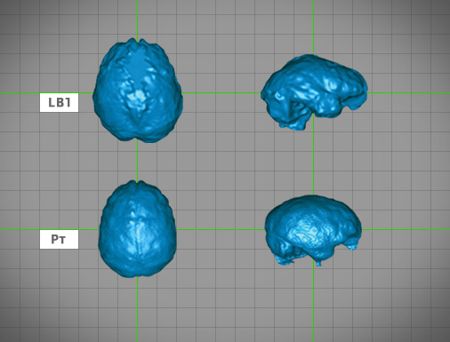 team found. LB1's has large temporal lobes, which in people are